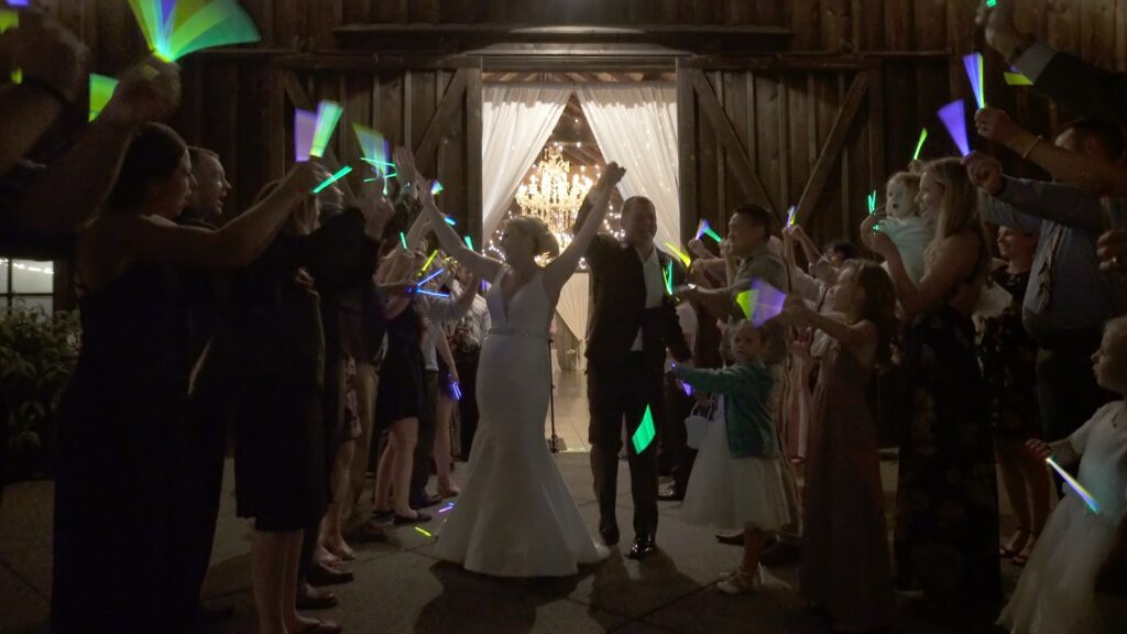 Instead of just cake, they treated guests to cupcakes and pie. They also set up a video message booth where friends and family left personal and funny messages. The celebration ended with a glowstick exit surrounded by their loved ones.