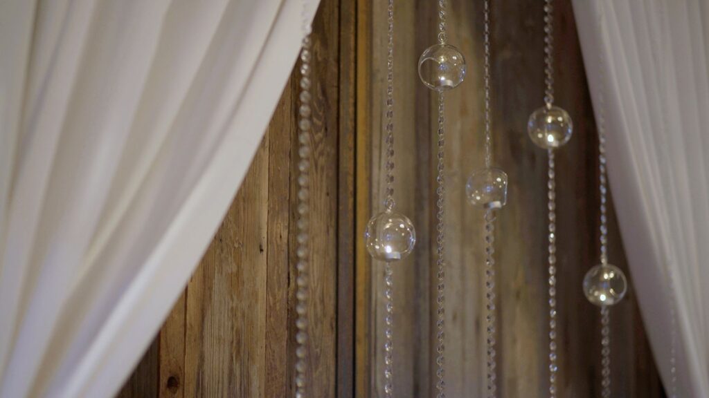 The property blends rustic charm with elegant touches, making it ideal for wedding photography and videography. Natural light floods through the windows of the main building, creating a warm glow in all the footage.